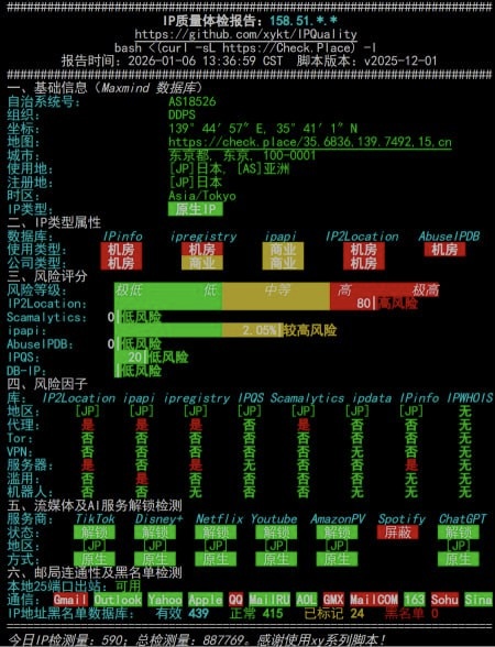 流媒体解锁测试: